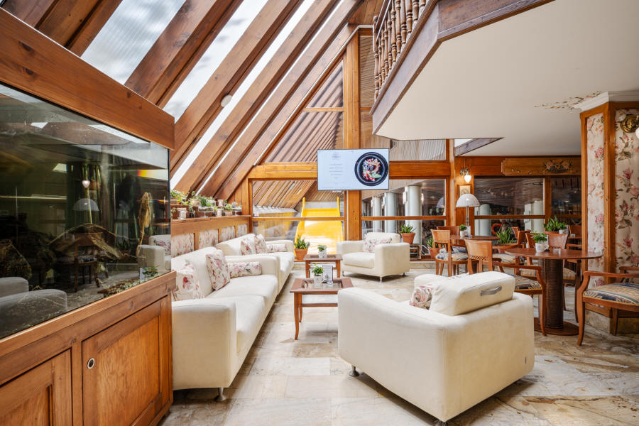 страв, що подаються в ресторані на верхньому поверсі готелю, можуть розбудити сплячого лицаря (Гевонта), яким можна милуватися з тераси цього ресторану. Рекомендуємо розслабитися за чашкою